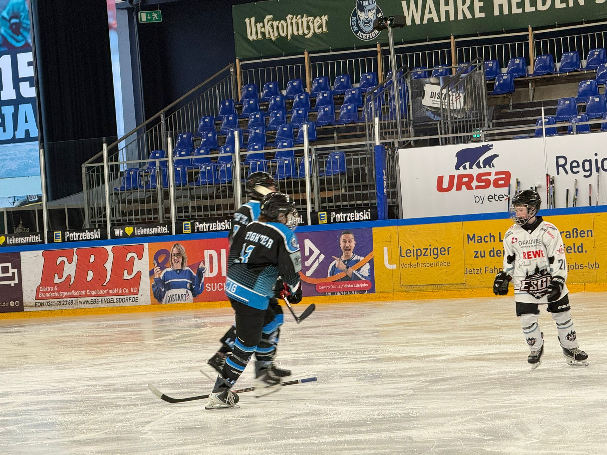Spannend bis zur letzten Sekunde verlief das Spiel in der Verzahnungsrunde der U15 LK1 Spielgemeinschaft Leipzig/Halle/Chemnitz gegen die Eishockeyspielgemeinschaft Hannover (Eislauf Club Hannover Indians e.V., Hannover Scorpions) . Bereits in der ersten Spielminute erzielten unsere Gäste das 0:1. Jetzt hieß es für uns weiterkämpfen und nach drei Strafen für Hannover, glich unser Team den Spielstand mit einem 1:1 aus.